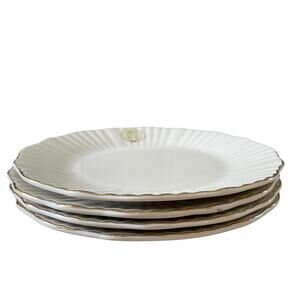 4pc Eaton Fine Porcelain Aubrey Dinner Plates 10.5" Fluted Gold Accent Edge