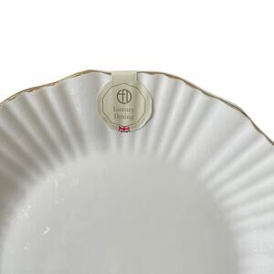 Eaton Fine Porcelain Aubrey Dinner Plates 10.5" Fluted Gold Accent Edge Set of 4