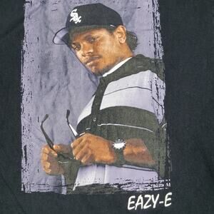 Own a piece of hip-hop history with this Eazy-E black unisex tee in size medium! The graphic has some cracking, adding a vintage touch. Please refer to the pictures for a closer look. This tee is in overall great condition and comes from a smoke-free home.