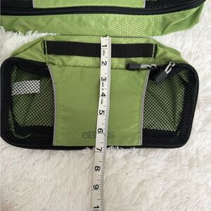 Set of 3 green travel packing cubes. Various sizes see pictures. All gently used. No holes and zippers work. Perfect for organizing luggage and or makeup