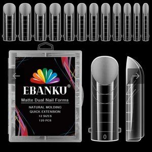 Ebanku False Nail System NEW Matte Dual Nail Forms 120 Pieces (12 Sizes) W/Case