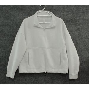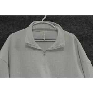 Ebb & Flow Athleisure Sweat Top Women's Large White Quarter Zip Kangaroo Pocket