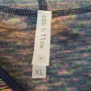 The multi colored, fleece lined, hooded pullover is perfect for that early morning run! And yes, it has thing holes! Size is an XL, fits like a medium
