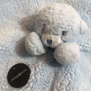 Ebba plush lovey security blanket. Blue bear. Fluffy and soft. 12.5” square. Polyester. November 2019