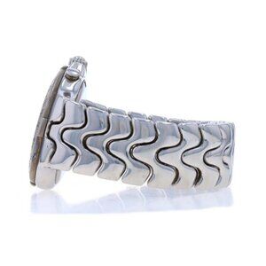This handsome designer timepiece is accompanied by the presentation box, storage pouch, papers, designer hang tag, and one extra link.
