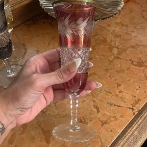 Ebeling & Reuss Marchioness Cranberry Crystal Cut to Clear Champagne Flute