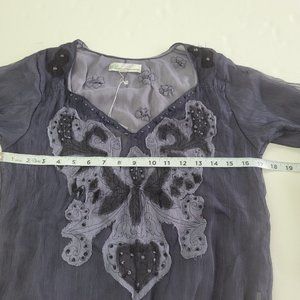 Ebene by Patrick Assuline Shirt Womens S Tossia Silk Embroidered Beaded Blouse