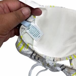 Features- bandeau style, ties at back and around neck, removable pads, lined