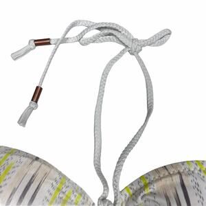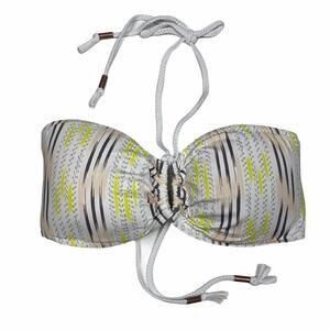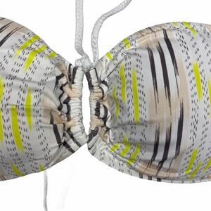 Features- bandeau style, ties at back and around neck, removable pads, lined
