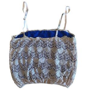 Eberjay Lace Crochet Pajama Tank Top Cami Women’s Size Medium Tan Blue
