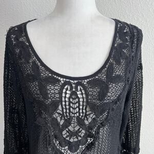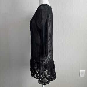 Eberjey Breezy Weave Black Floral Crochet Swim Coverup Women's M Mini Sheer