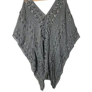Eberjey Crochet Grey Beach Poncho Coverup M/L
