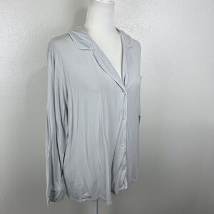 Eberjey Gisele Pajama Top Women Medium Grey Long Sleeve Tencel Button Up