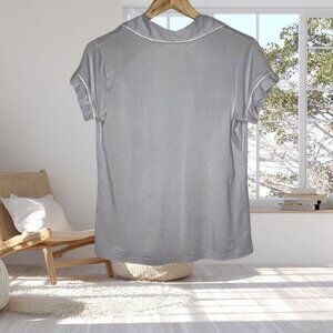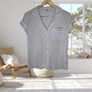 Experience ultimate comfort with this buttery-soft Eberjey pajama set, known for its incredible quality and luxurious feel. This popular two-piece set features a collared, button-down short sleeve top with a chest pocket and matching pull-on shorts, both trimmed with classic white piping. Perfect for sleeping, lounging at home, or gifting! The eco-friendly Tencel fabric drapes beautifully and feels cool against the skin. Ready to ship quickly!