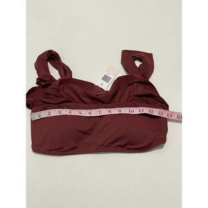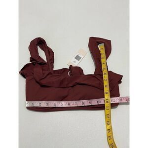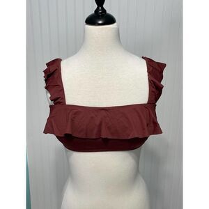 Eberjey Jane Solid Port Ruffle Sleeve Bikini Top Swimsuit Burgundy Red Large