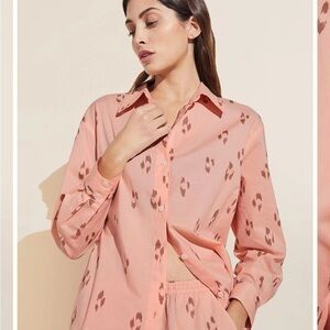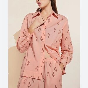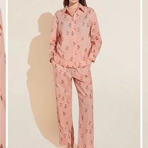 Eberjey Organic Sandwashed Cotton Printed Long PJ Set Peach Pink Sz S NEW
