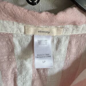 Eberjey Pink White Stripe Lightweight Long Sleeve Button Down Pajama Top Womens S