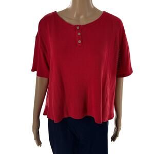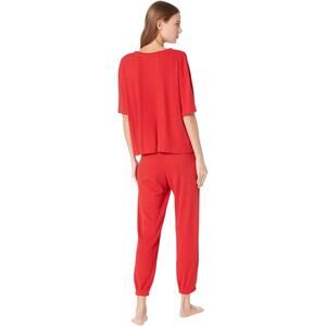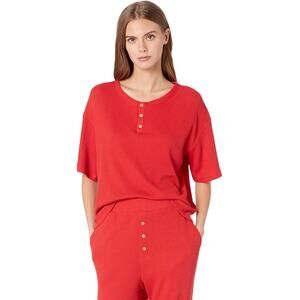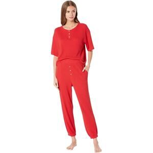 Eberjey Red Cozy Waffle Henley Short Sleeve Long Pants Pajama PJ Set