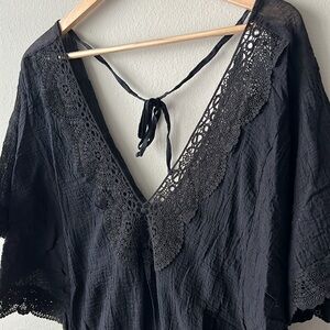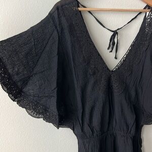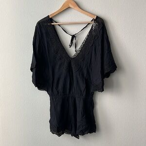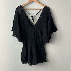 Eberjey Sol Lace Trim Liberty Romper 100% Cotton Swim Coverup in Black Size S/M