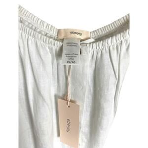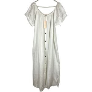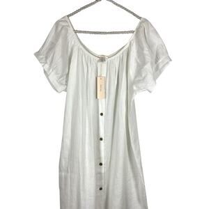 Eberjey The Harper White Linen Short PUff Sleeve Button Down Midi Dress Size XL