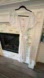 Elegant off-shoulder midi dress. Features button-down front and waist tie. Perfect for casual outings. 100% linen. No pockets