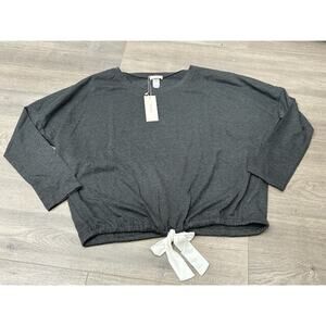 Eberjey Womens Heather Slouchy Pajama Top Drawstring Hemline Charcoal Size S NWT