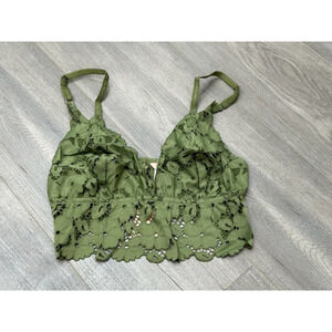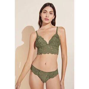 Eberjey Womens Naya Longline Bralette Stretch-Lace Pullover Olive Size XL NWT