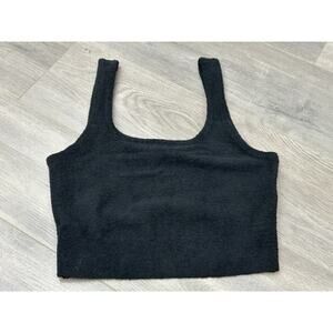 Eberjey Womens Recycled Boucle Sweater Crop Tank Top Pullover Black Size S NWT