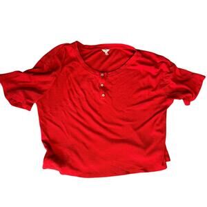 Eberjey Women's Short Sleeve Pajama Set. Waffle Knit, Red, Jogger bottoms, Elastic Waist, Pockets, Short Sleeve., Henley Design, Size XL