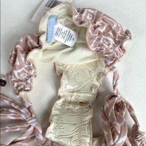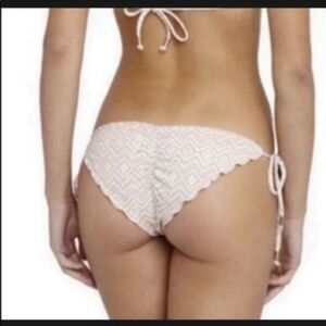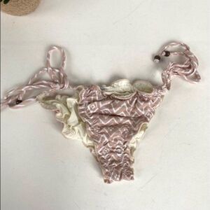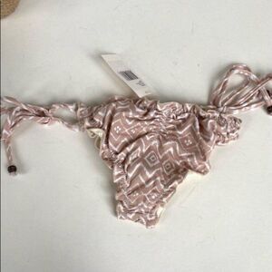 Features: print, stretch nylon, tie at sides, low rise, fully lined, hygenic liner intact, moderate coverage, beach, summer, vacation, resort, revolve, cruise, get away
