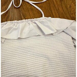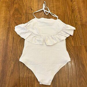Eberjey ribbed smocked one piece swimsuit with ruffle trim and halter neck in white Size 12