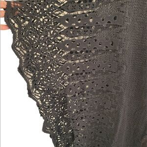 Beautiful Eberjey crocheted lace cover up with scalloped edging. There’s a fade line in the coloring but you have to look twice to notice it. See pics for details. Price reflects the flaw.