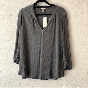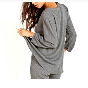 NWT Eberjey Women's Ula Peasant Sleepwear Long Sleeve V-Neck Buttons Shirt Gray