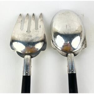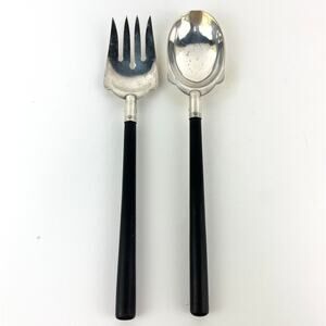 Ebony Handle and Silver Plate Salad Serving Spoon and Fork