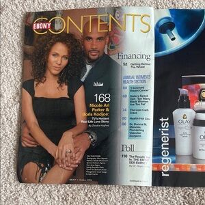 Ebony Magazine featuring TV's hottest real-life love story. Includes stories on breast cancer survival and the sexuality of black women.