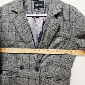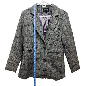 Ebossy Womens Plaid Blazer Jacket Grey & Black Double Breasted Size S
