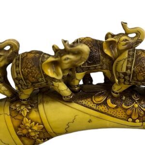 Ebros Faux Wood African Elephant Herd Great Migration Tusk Bridge Figurine -4