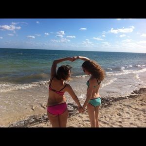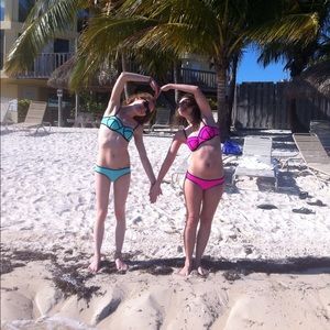 Worn once!! True to size. Dries out super easy and looks cute on most body types!