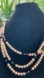 Vintage 80s glam 3 strand glass pearl necklace with black onyx colored accent spacers. Dramatic panther hook clasp closure (silver tone, not real silver). Stunning costume piece of jewelry that sparkles beautifully in the light.