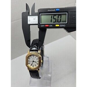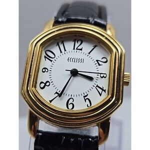 Ecclissi 80195 Womens Gold Tone Cushion Watch Black Leather New Battery Quartz