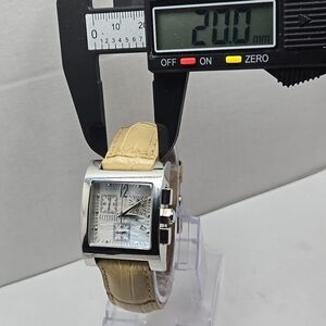Ecclissi Chronograph Watch Unisex Silver Tone Date Tan Leather Band New Battery