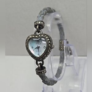 Ecclissi Sterling Silver Heart Watch Marcasite Bracelet MOP Dial New Battery 925