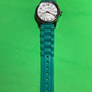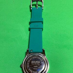 Ecclissi Sterling Silver With Green Silicone Band Female Watch: 23980. Silver dial. Japan movement. Fits up to 8 inch wrist. Budkle closure.