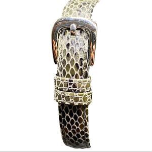 Ecclissi genuine leather wristband style cuff reptile print chrome buckle