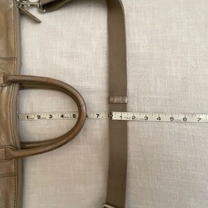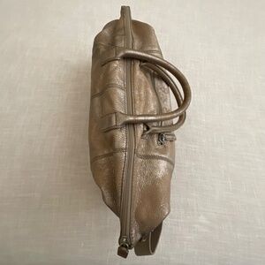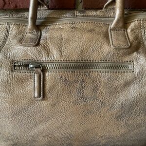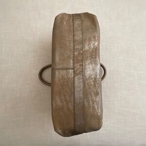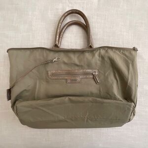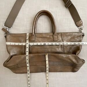•Ecco Beige Genuine Pebble Leather Silver Metallic Weekender Tote Travel Bag
