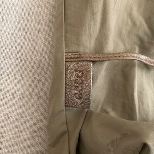 Ecco,, soft pebble genuine leather beige with silver metallic weekender bag.Zip pocket on front, embossed brand name logo.Silver hardware, Zip closure, Beige canvas adjustable strap.Beige cotton lining, interior zip pocket and two slip on compartments.