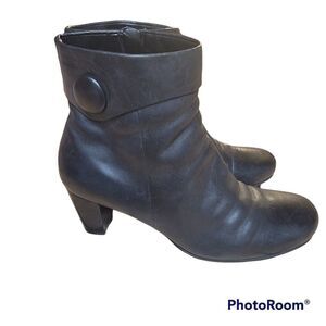 Ecco Black Leather Booties with Zipper Closure and Button Detail. Size 41.