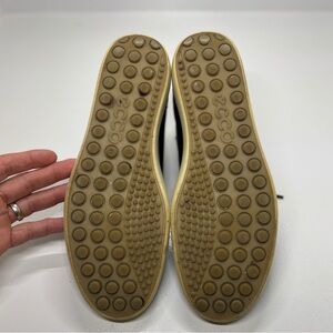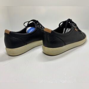 Experience the perfect blend of style and comfort with these Ecco sneakers, featuring a smooth black leather upper and contrasting white sole. The low-top design and traditional lacing offer a classic look, making them ideal for everyday wear.
