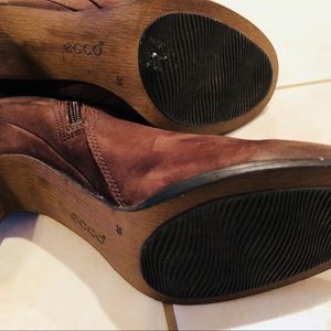 Ecco Booties. Worn but in good condition. Dark brown leather upper material.