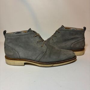 Ecco Boots Mens Sz 41 7 / 7.5 Lace Up Chukka Gray Nubuck Leather Boots See pictu